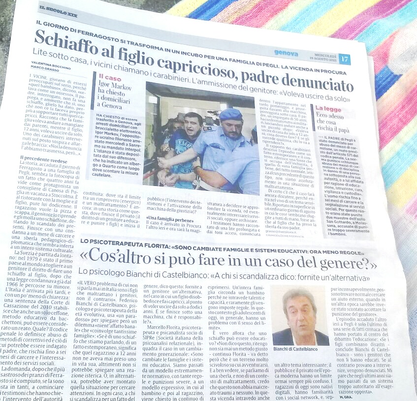 Il 19 di agosto è uscito sul quotidiano "Il Secolo XIX" un articolo inerente ad un fatto di cronaca che ha fatto scalpore ed ha aperto un ampio dibattito sui sistemi educativi e sui giovani d'oggi.